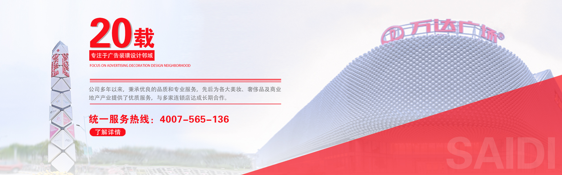 上海赛迪广告装璜有限公司成立2000年10月份, 从事发布、设计、制作、维修、安装各类广告工程。近年来吸取国内外广告企业的先进经验,购进各种大型专业设备,引进高素质的专业技术人员。